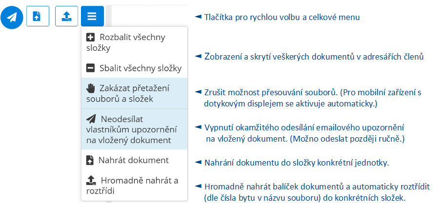 Menu dokumentů pro členy nabízí následující možnosti: